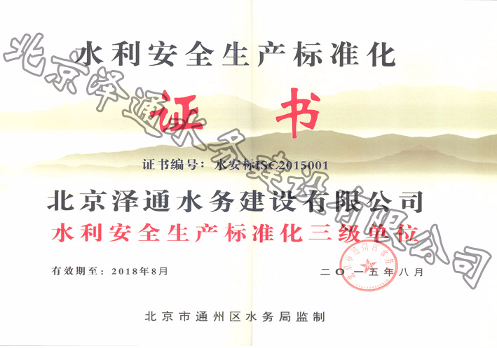 水利安全生產標準化證書
